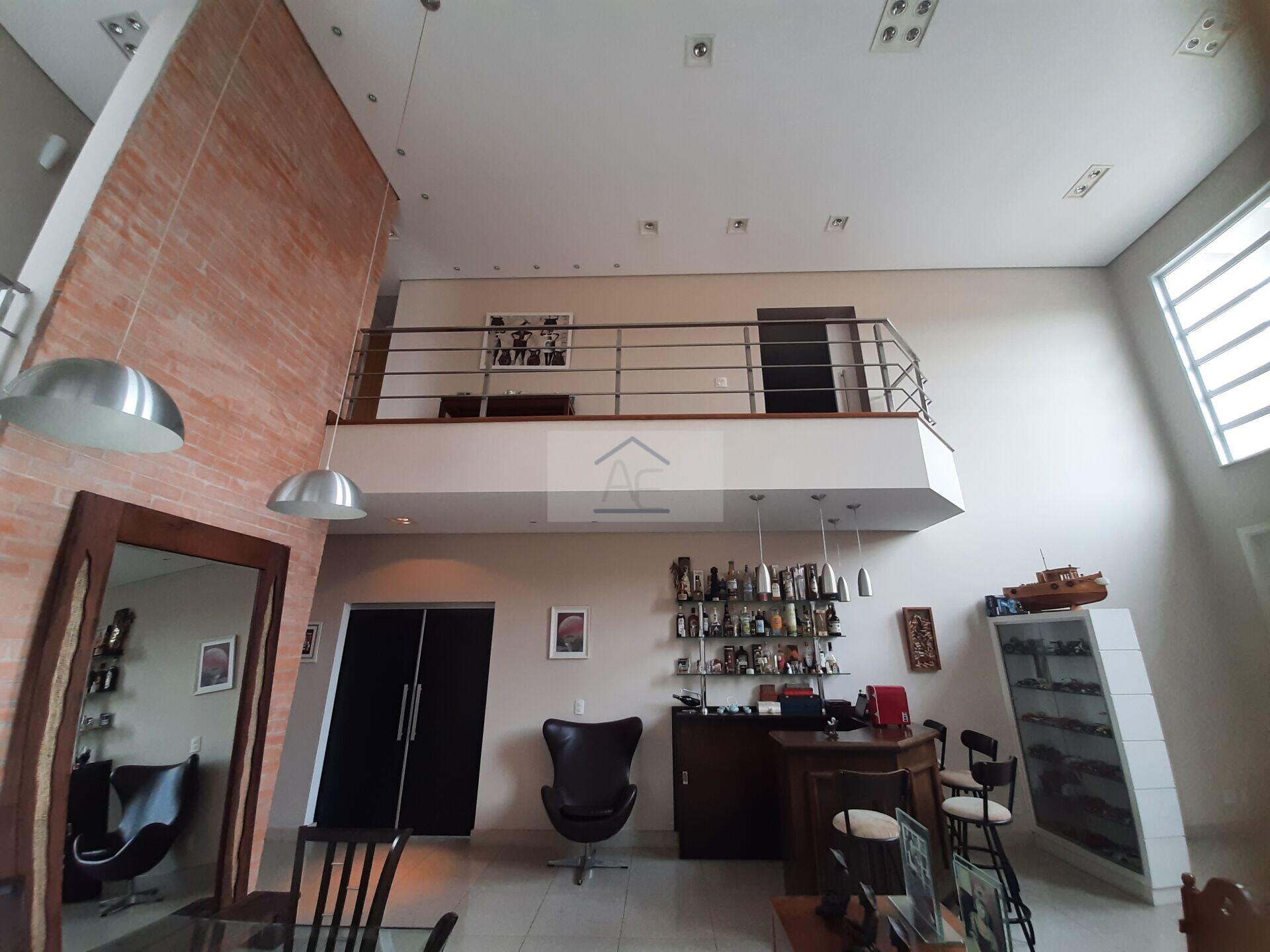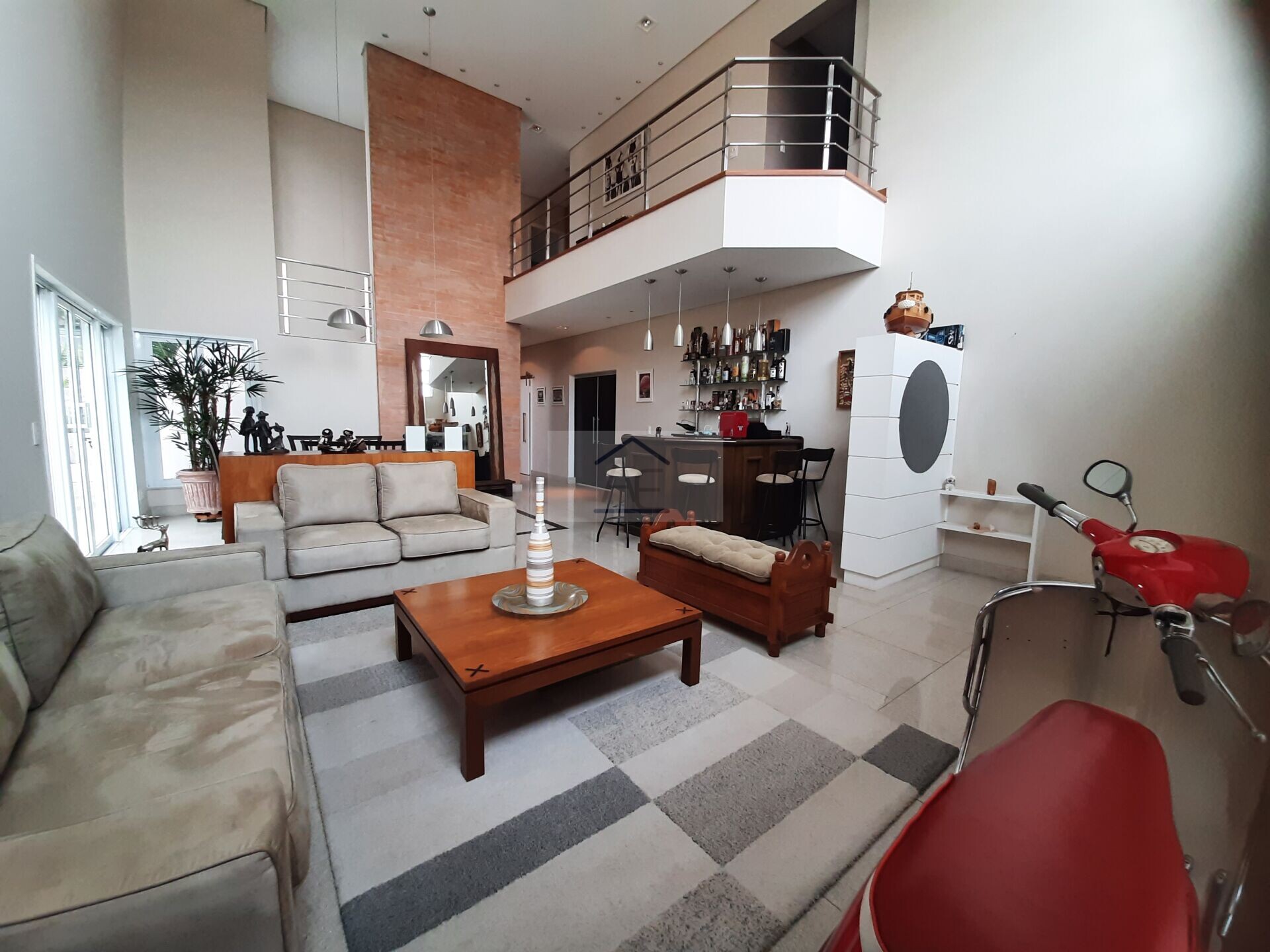 Casa com 4 suítes sendo uma master com closet. Uma das suíte fica no piso térreo. Possui sala íntima, living com pé direito duplo, bar, adega, escritório (ou possibilidade de dormitório), lavabo, cozinha planejada e com ilha, despensa, lavanderia e wc empregada. Piso em granito e na ala íntima piso em madeira, ar condicionado em alguns cômodos